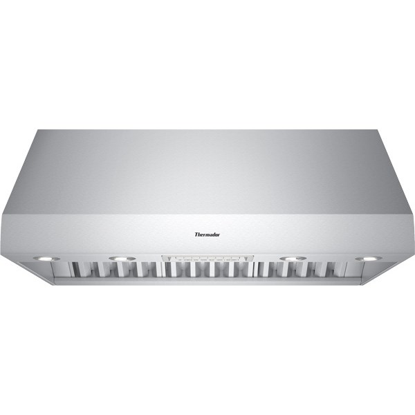 This Thermador 42″ Professional Series 27″ Deep wall hood features Three fan speeds. Auto function senses heat from the cooking surface and adjusts fan speeds. Powerfully quiet ventilation systems. Extended capture area ensures removal of smoke and odor. Built-In ‘Clean Filter’ reminder light illuminates after 40 hours of operation. Delayed shut off tackles lingering odors for up to 10 minutes. Dimmer lighting for soft lighting effect. Two infrared keep hot lamps hold food warm until serving time. Dishwasher safe stainless steel baffle filters. Dishwasher safe grease collection trays are easily removed. Filter systems are highly efficient at capturing grease. Vertical or horizontal ducting direction. Seven different blowers to choose from the line up according to cooking needs. Choose from Inline, Remote or Integrated Blowers (Blowers sold separately). Hood includes filters, backdraft damper and transition. Approved by CSA/UL for damp environments. 27″ Depth hood is a perfect companion to the Pro Grand professional range. Chiseled design for a seamless integration into any kitchen. Brushed stainless steel finish. Halogen lighting spotlights your best recipes. Easy to view recessed control panel with stainless steel buttons. Stainless steel professional style baffle filters.