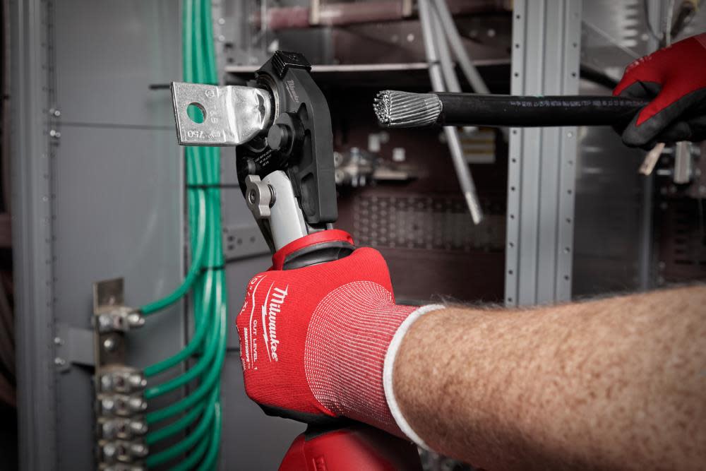 The M18™ Force Logic™ 600 MCM crimper w/ 750 MCM expanded jaw is the most accurate way to crimp producing cULus classified crimps according to the UL 486A-B classification standards for #8 – 750 MCM copper & dual rated Anderson, Blackburn®, Burndy, Ilsco, Panduit, Penn-Union and Thomas & Betts connectors. Utilizing Milwaukee U style dies that feature vivid wire size markings, industry standard color markings and imprint wire size onto the connector after crimp completion, commercial electricians benefit from its ease of use and easy inspection. For use with 2679-20, M18™ Force Logic™ 600 MCM crimper.