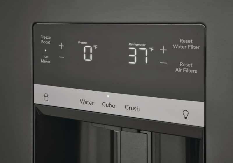 Black Stainless Steel Frigidaire French Door RefrigeratorWith its reliable features and sleek black stainless steel design, this Frigidaire French door refrigerator looks as good as it cools. Enjoy the freshest produce possible thanks to the CrispSeal® Crispers, which feature a unique seal that blocks out dry air from entering the drawers. This technology prevents produce from shriveling and helps slow rotting or molding. The full-width deli drawer is made to store deli meat, string cheese and cheese slices conveniently and effectively. This Frigidaire French door refrigerator also features ample door bin storage, giving you more room for jams, jellies or hot sauce without sacrificing shelf space. The French door design means that the shelves inside are wider so you can store more food and keep your fridge better organized. When you’re thirsty, you don’t even have to open the door—this fridge features an external water dispenser with PurePour™ water filter so you can enjoy clean, cold water with the push of a button. Thoughtful Design for Ease of UseThis Frigidaire French door refrigerator is designed for convenience. Enjoy lower energy bills thanks to its auto-close doors, which close automatically if the door is left open 5″ ajar or less. Foods are stored at the proper temperature to prevent spoiling or melting with the EvenTemp® cooling system: a variable compressor quickly responds to temperature fluctuations and circulates cold air through the fridge and freezer. The freezer’s drawer design gives you a bird’s-eye view of the contents inside so you know exactly what you have while planning what to eat for dinner. To learn more about this Frigidaire appliance or its features, please call our experts at 800-860-3577 or visit our Glenview retail store. We also have a refrigerator buying and sizing guide so you can ensure you have the best option for your home. Features