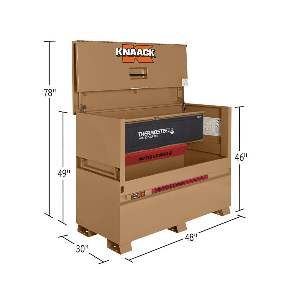 The model 79 STORAGEMASTER® piano box with ThermoSteel measures 48 In. wide, 49 In. tall and has a capacity of 36.2 Cu. Ft. ideal for every trade, it is caster-ready and includes full-width shelves for organization of tools and supplies. Featuring heated storage to keep everything at the optimal temperature. It also features a bi-fold cover which folds completely out of the way for unrestricted access and fits perfectly in the width of a full-size truck bed.